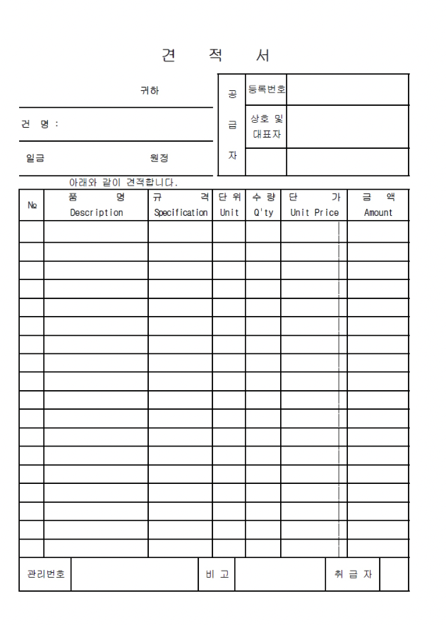 하지만 한번 작성해보면 나중엔 5분이내로 견적서를 작성할 수 있을 정도로 요령이 생깁니다.